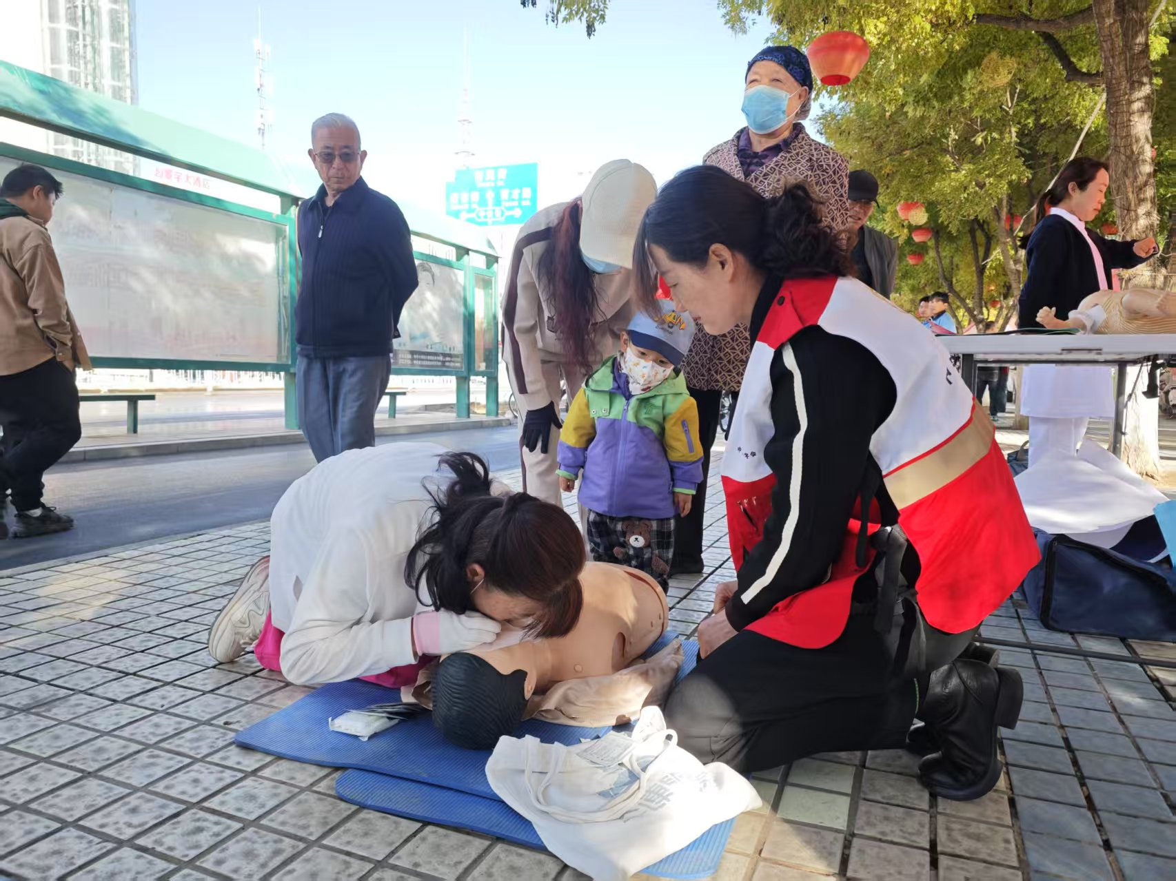 学习核心技能,实操培训心肺复苏(CPR):设置CPR模拟人教学点,救护师资详细讲解并演示了判断意识、胸外按压、人工呼吸等急救知识。现场群众在指导下轮流进行实操练习,掌握了“黄金四分钟”内的核心抢救技能。